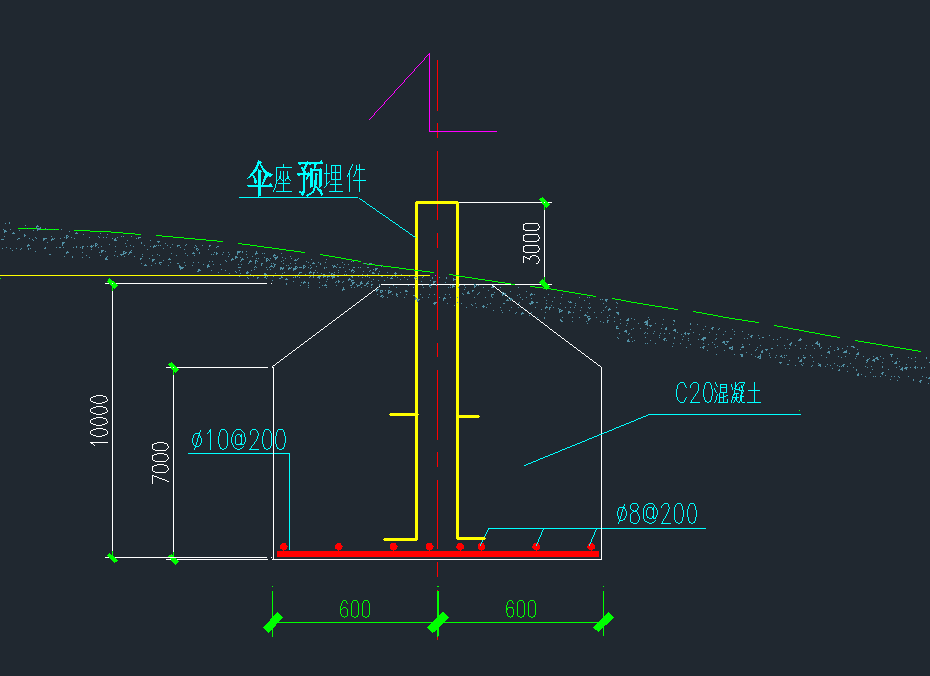 傘座預(yù)埋件基礎(chǔ)示意圖?