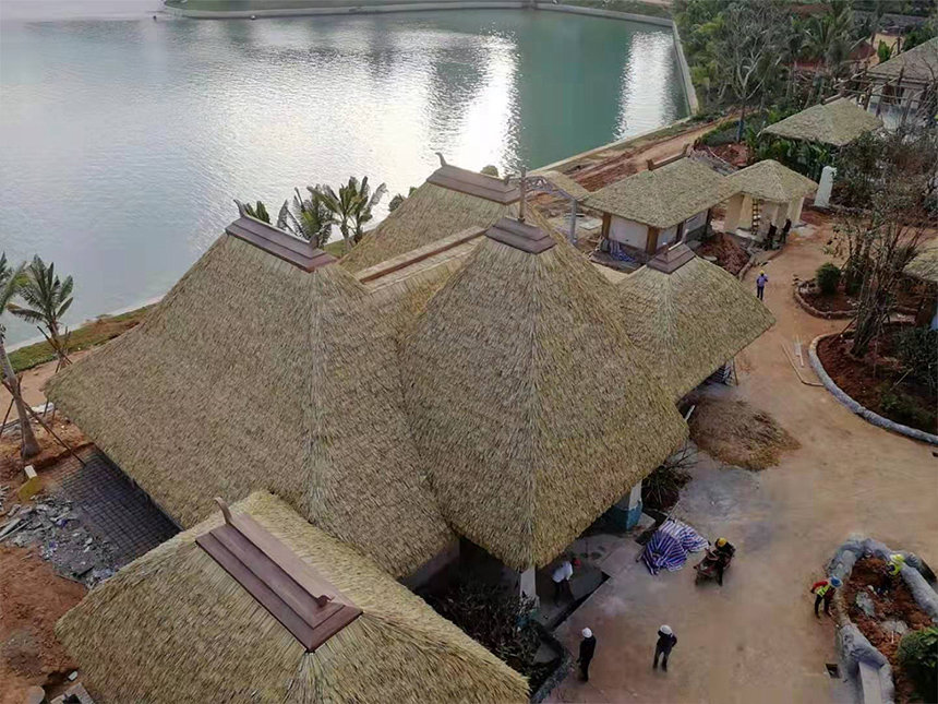 ? ? ? ?人造茅草柔中帶韌的質(zhì)感頗有不羈、灑脫的魅力,而其紋理設計是仿制真茅草特有的,飄逸又自由營造出一種自然又藝術的空間氛圍。屋面是景區(qū)或家居的“門面”,人造茅草更是現(xiàn)代風格下的屋面主流熱門建筑材料,讓景區(qū)存在一種國際潮流范,更是在忙碌生活之余擁有舒適的空間。