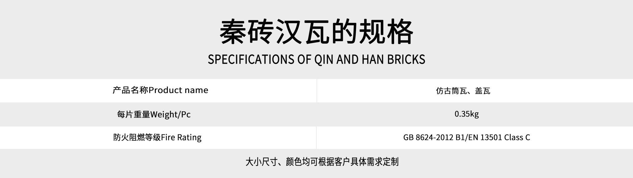 ? ? ? ???深圳市科佰工貿(mào)有限公司為弘揚(yáng)中華民族傳統(tǒng)文化增磚添瓦,新研發(fā)一套仿古園林建筑材料秦磚漢瓦,產(chǎn)品配件包括:青磚、勾頭(筒頭)、滴水、花邊瓦、筒瓦、板瓦、脊瓦、擋勾、元頭等以及各種定制古建配件;同時我公司常年承攬各種大中小型古建工程,包括:四合院、廟宇、亭臺樓閣、景區(qū)工程,古建群落等,為客戶提供古建主體工程設(shè)計、施工、材料以及維護(hù)全程跟蹤服務(wù)!