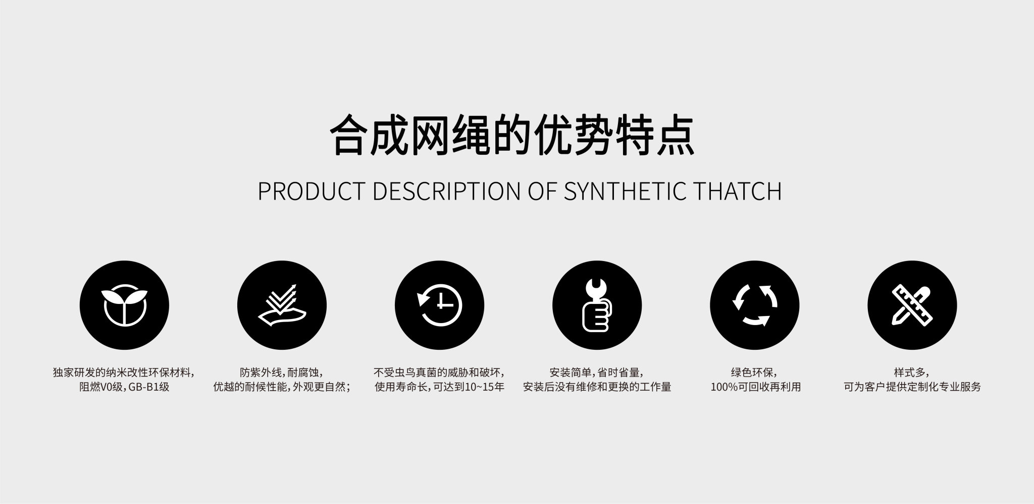 ? ? ? ? 景觀皮革繩是深圳市科佰工貿(mào)有限公司采用目前國際上先進(jìn)的納米合成高分子材料技術(shù)和工藝生產(chǎn)。利用納米粒子的特有的物理化學(xué)性質(zhì),使得其具有更加優(yōu)異的耐候性及阻燃性,能滿足美國ASTM-G154-06 抗UV老化測試標(biāo)準(zhǔn),并能通過美標(biāo)UL94-V0級阻燃,在國內(nèi)綁扎茅草繩也通過了國家防火建材阻燃測試B1級。?